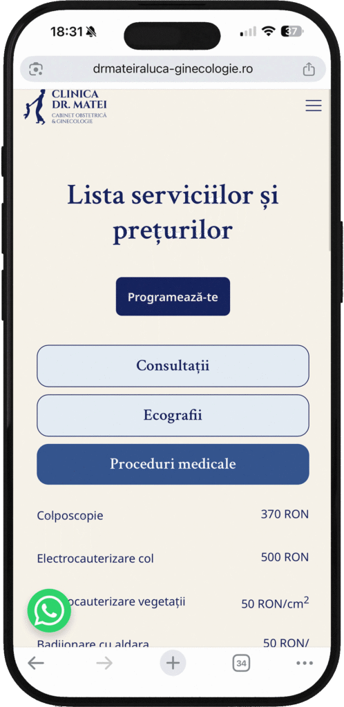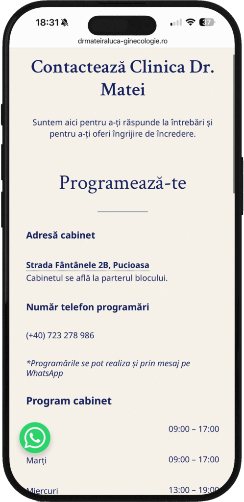 Clinica Dr. Matei is a small gynecology practice in Pucioasa, Romania. Before this project, the clinic had no visual identity, no website, and no digital footprint capable of supporting modern patient expectations.