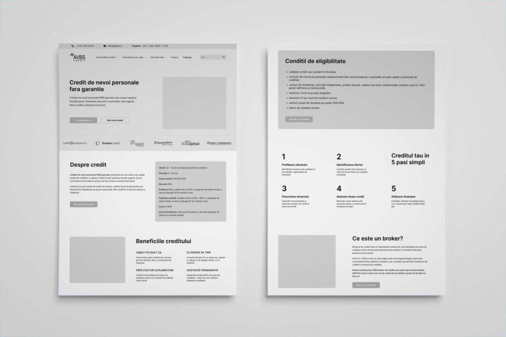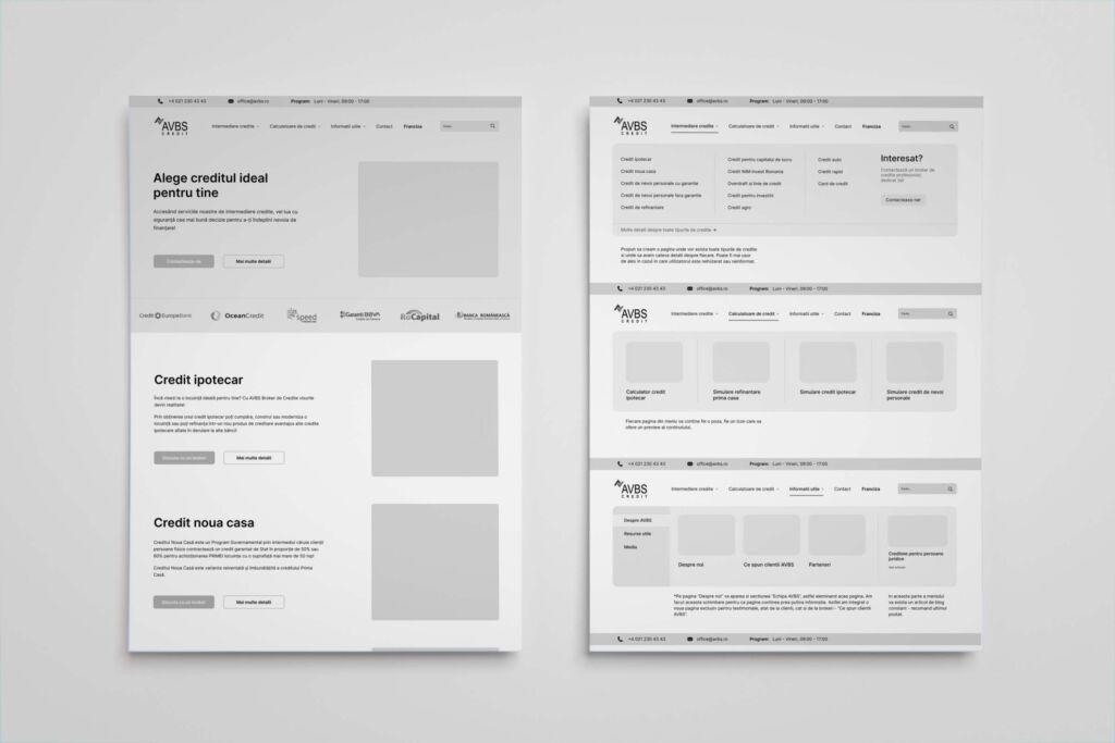 For AVBS, I created a full set of high-fidelity wireframes designed to restructure a complex financial platform into a clearer, more intuitive experience.